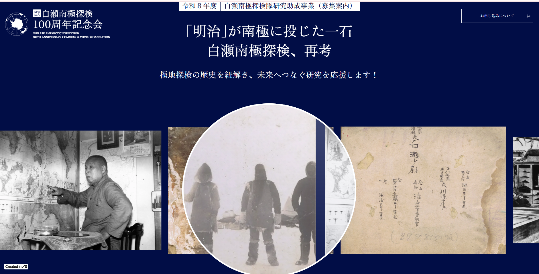 白瀬隊に関わる研究助成事業を開始、研究者を募集中です